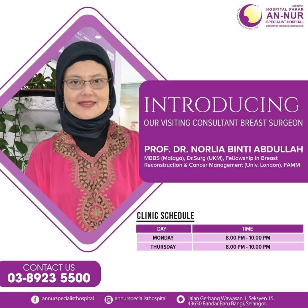 An Nur Specialist Hospital Bangi On Twitter Introducing Our Visiting Consultants Of Breast Surgeon Of An Nur Specialist Hospital And Her Clinic Schedules Prof Dr Norlia Binti Abdullah Visiting For Any Appointment Enquiries